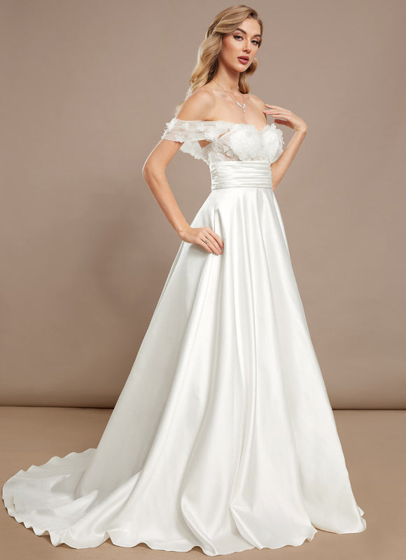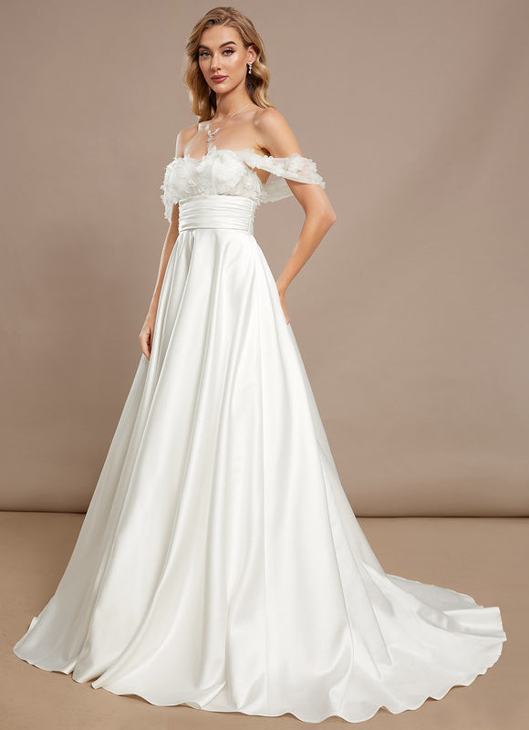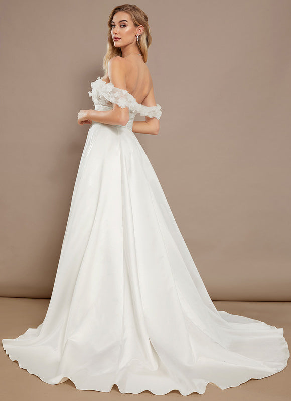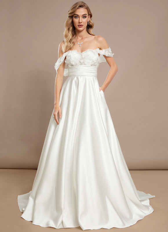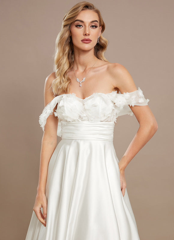 Robe Nuptiale Satinée À Fleurs 3D : L'Élégance Romantique pour Votre Grand Jour